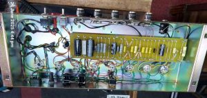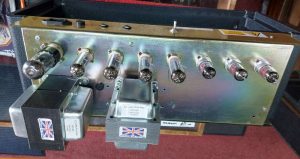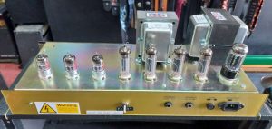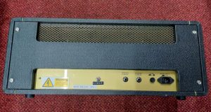 It’s a PTP handwired turrent board, 4 x EL84 power section. Controls are Master, Bass, Mid, Treble, Gain. Single input, power/standby switch, 8/16Ohm outputs and a “tight and bright” switch on the rear which drops in a circuit that tightens up the bass and makes the mids a little more poky. Extremely expressive, loves pedals, good clean headroom but what you want this for is the range of breakup, from a little bit of hair to full-on harmonic sustain crunch glory. Needless to say it’s very bold and British sounding but not entirely Marshall, more like Orange grit but with the tone stack out of a Vox.